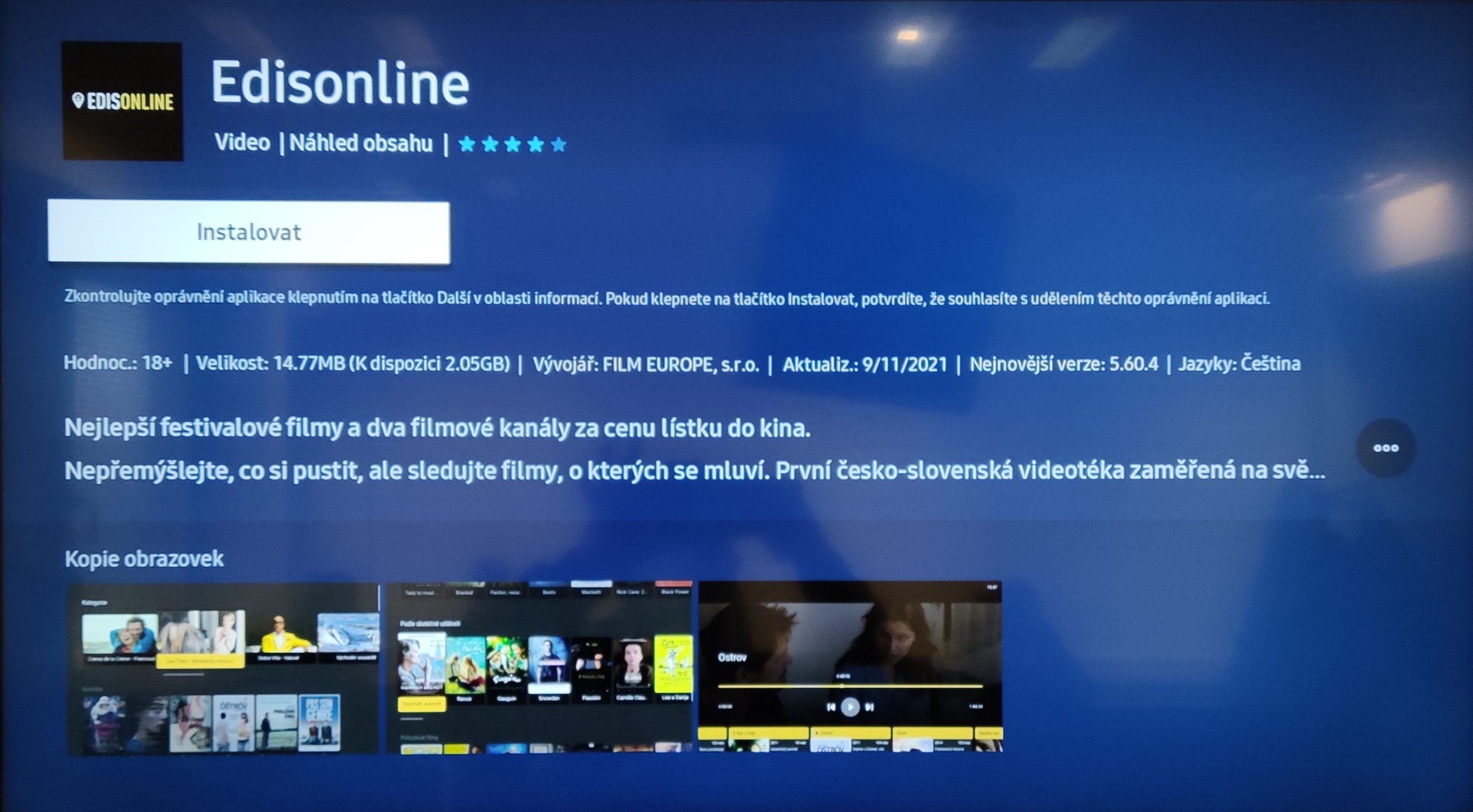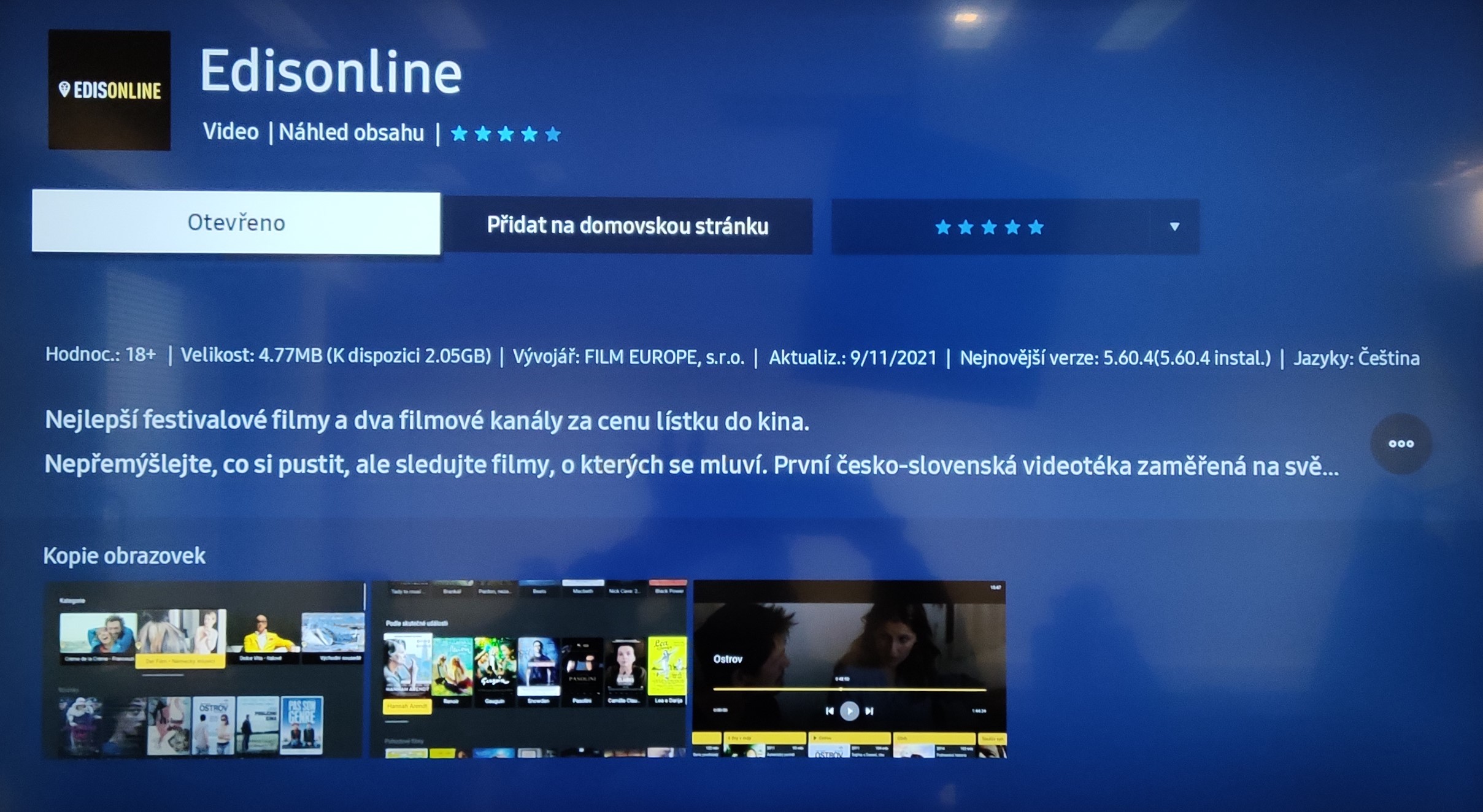 Službu je možné využívat prostřednictvím aplikace pro Samsung Smart TV.